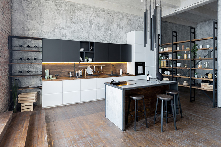 Na większej powierzchni można zaprojektować efektowną wyspę kuchenną, która staje się centralnym punktem całego wnętrza. Wyspa to miejsce przygotowywania posiłków, przestrzeń do wspólnego gotowania, a często także strefa szybkich posiłków. Dzięki niej kuchnia zyskuje nową funkcjonalność i staje się jeszcze bardziej otwarta na domowników. Nawet w dość chłodnej aranżacji w stylu loftowym, w której przy zlewozmywaku ustawiono baterię Zicco Black.