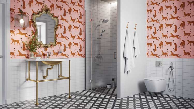 Płytki jak z londyńskiego metro, zwierzęce nadruki, wzorzyste posadzki to charakterystyczne detale w łazienkach angielskich rezydencji. Ten styl pozwala gustownie łączyć style retro oraz nowoczesny. Praktycznie dowolnie można zestawiać kontrasty, jak chrom i złocenia, biel i czerń, elementy barokowe z minimalistycznymi. W takim otoczeniu sedes o nowoczesnej, prostej linii może pełnić także funkcję bidetu. Wystarczy obok zainstalować specjalną armaturę, jak bateria podtynkowa bidetowa z zestawem ALGEO. Dzięki temu, że rączka wyposażona jest w elastyczny wąż, można jej swobodnie używać nie tylko w obrębie sedesu, ale także poza nim, np. napełniać wodą wiaderko, by umyć podłogę.