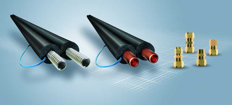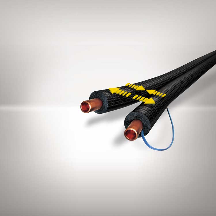 Inne potrzeby mają instalacje pomp ciepła, które często są narażone na gwałtowne zmiany pogody i uszkodzenia mechaniczne. Tu sprawdza się system rurowy ArmaFlex Fastlink, łączący elastyczne rury ze stali nierdzewnej z bezszwową powłoką odporną na promieniowanie UV. Zewnętrzna warstwa chroni przed warunkami atmosferycznymi i uderzeniami, a elastomerowy materiał izolacyjny o zamkniętej strukturze komórkowej zapobiega utracie energii i tworzeniu się skroplin.