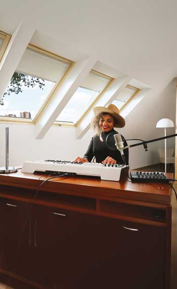 Przykładem rozwiązania, dzięki któremu zyskamy komfort na poddaszu są okna dachowe FAKRO GREENVIEW. Zapewniają one wysoki poziom izolacyjności akustycznej – aż do Rw=40 dB. To zasługa konstrukcji okna, w tym wykorzystania podwójnej folii dźwiękoizolacyjnej umieszczonej pomiędzy szybami. W efekcie na poddaszu możemy swobodnie wypoczywać, pracować, a także oddawać się swoim pasjom, nie zakłócając przy tym spokoju innym.