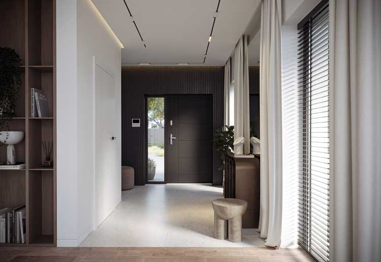 Decyzja o wyglądzie drzwi wejściowych powinna uwzględniać styl wnętrza. Jeśli dom jest utrzymany w duchu klasycznym, z ciepłymi kolorami, drewnianymi meblami i eleganckimi detalami - niech drzwi wejściowe będą tego zapowiedzią. Z kolei nowoczesna, minimalistyczna bryła budynku z dużymi przeszkleniami wymaga zastosowania prostych, bardziej geometrycznych form.