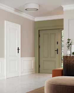 Zaplanowanie spójnej kompozycji ułatwia kolekcja drzwi zewnętrznych PORTA THERMO, które mają swoje odpowiedniki w linii drzwi wewnętrznych tej marki. Przykładowo, drzwi wejściowe PORTA THERMO RETRO bardzo dobrze współgrają z drzwiami wewnętrznymi PORTA IMPERIAL - oba te rozwiązania wyróżniają klasyczne detale i eleganckie proporcje. Miłośnicy odważniejszych zestawień mogą natomiast połączyć drzwi retro z designerską kolekcją 4 ŻYWIOŁY P/ POWIETRZE, wprowadzając nowoczesny akcent.