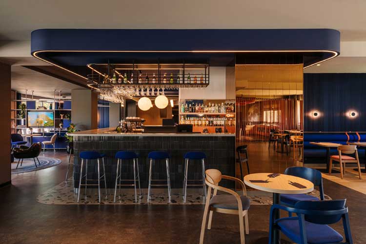 W ramach projektu pracownia AKA Studio przeprowadziła gruntowną przebudowę układu funkcjonalnego hotelu, dzięki której przestrzeń zyskała spójność i większą efektywność użytkową. Kontuar recepcji przeniesiono w głąb sali, łącząc go z zabudową barową, a w miejscu dawnego stanowiska recepcyjnego powstało przestronne lobby wejściowe. Takie rozwiązanie usprawniło obsługę większej liczby gości i umożliwiło płynniejsze zarządzanie strefą wspólną.