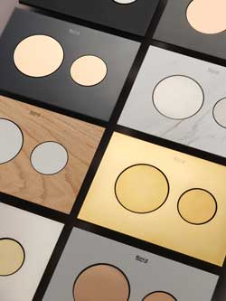 Fot. Szeroka paleta przycisków spłukujących do stelaży Roca Duplo S to łatwe dopasowanie koloru, faktury i stylu przycisku do wyglądu łazienki