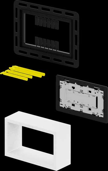 Przycisk stanowi rodzaj specjalnej ramki montażowej, którą można pokryć materiałem o grubości od 4 do 20 milimetrów.