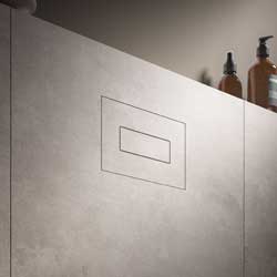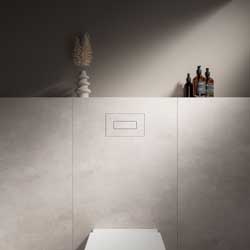 Wiele osób urządzających łazienkę marzy o całkowicie harmonijnej aranżacji, gdzie przycisk uruchamiający dosłownie wtapia się w ścianę nad miską WC. Viega spełnia te życzenia wprowadzając do oferty model, który można nie tylko idealnie zlicować z powierzchnią, ale również wypełnić ramkę montażową własnym materiałem - tym samym który pokrywa ścianę.