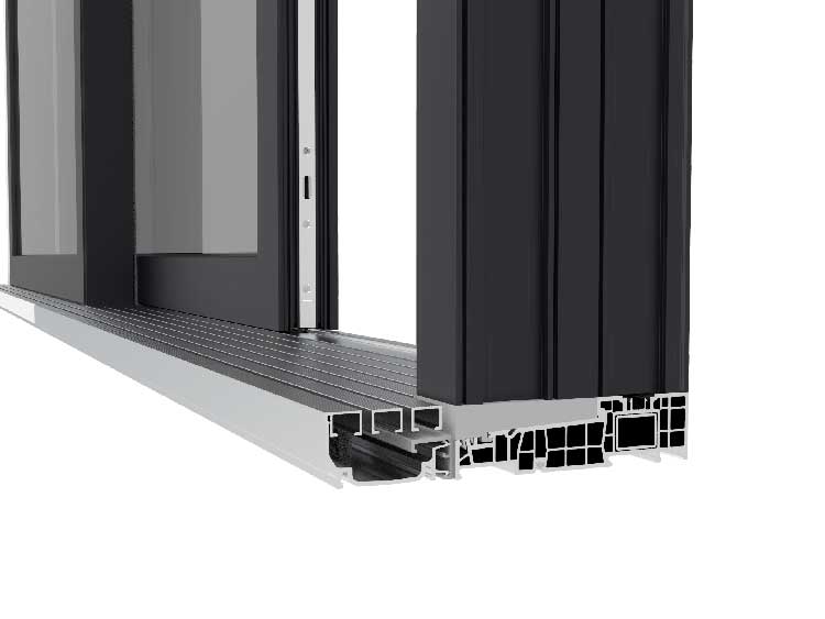 Niezależnie od schematu drzwiowego, gabarytów i materiału, z którego wykonany jest profil drzwiowy, okna tarasowe HS zachowują atrakcyjną formę i doskonale pasują do każdego wnętrza. Dopełnieniem tego efektu jest montaż HS-ów ze zlicowanym progiem (próg zero), dzięki któremu podłoga w mieszkaniu łączy się płynnie z posadzką tarasu. Bezprogowe rozwiązanie w drzwiach HS (np. próg GU TS-50) może mieć także wbudowane odwodnienie liniowe i charakteryzować się dobrą izolacją termiczną. Jedynym widocznym elementem w przejściu na taras jest prowadnica skrzydła jezdnego HS, której wysokość oscyluje między 4,5 mm a 15 mm. Próg GU TS-50 jest także elementem architektury bez barier, ponieważ jest zlicowany z podłogą i posadzką na tarasie.