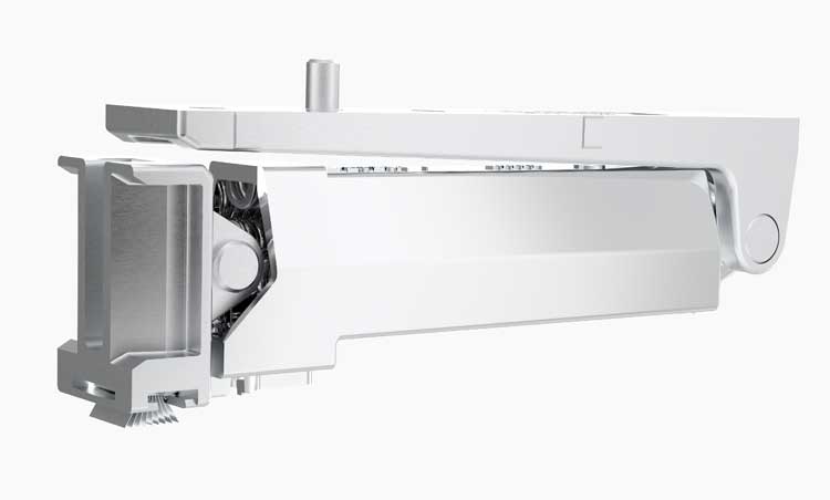 - HS SilentClose i HS StopUnit – ukryte mechanizmy amortyzujące, które spowalniają przesuw skrzydła w końcowej fazie ruchu i zapobiegają głośnym uderzeniom podczas obsługi. Ograniczają też ryzyko powstawania uszkodzeń spowodowanych uderzeniem skrzydła o ramę.
