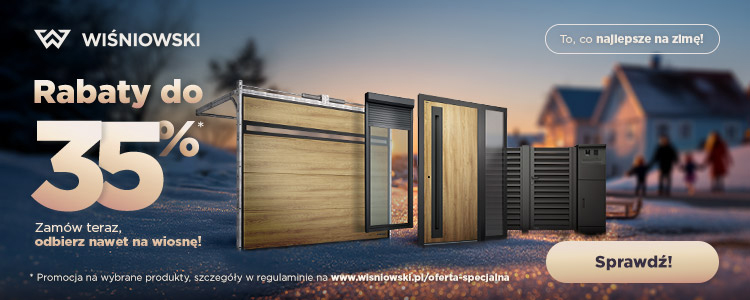 Promocyjna oferta WIŚNIOWSKI, obejmująca bramy, okna, drzwi, rolety i ogrodzenia, wspiera inwestorów w tym planowaniu – pozwala zamówić produkty teraz, w korzystnych cenach z 2025 roku, i odebrać je wtedy, gdy warunki do budowy domu będą najdogodniejsze.