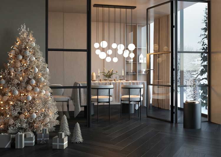 W świątecznym wnętrzu szczególnie dobrze sprawdza się oświetlenie, które podkreśla faktury, a dzięki odpowiedniemu rozmieszczeniu lamp pozwala zbudować wrażenie większej głębi i harmonii.