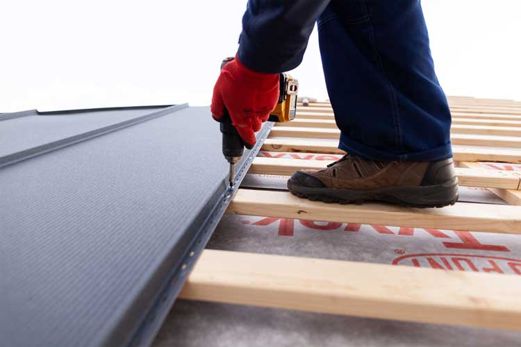 Wszystko zaczyna się od instalacji kontrłat. Są one montowane wzdłuż krokwi, na membranie oraz na podkładkach butylowych. Jeśli zdecydowaliśmy się na sztywne poszycie, to kontrłaty możemy przybić na wierzchu w dowolnym miejscu dachu. Rekomendowanym rozwiązaniem jest jednak ich zamocowanie w liniach konstrukcyjnych połaci.