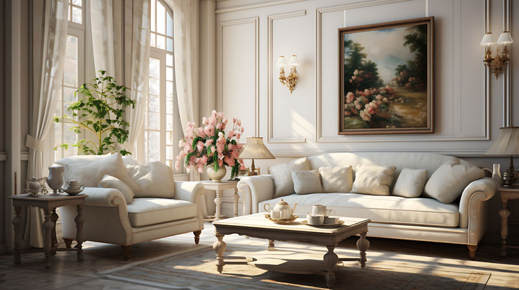 1. Wnętrze w stylu klasycznym – użyj jasnej palety barw