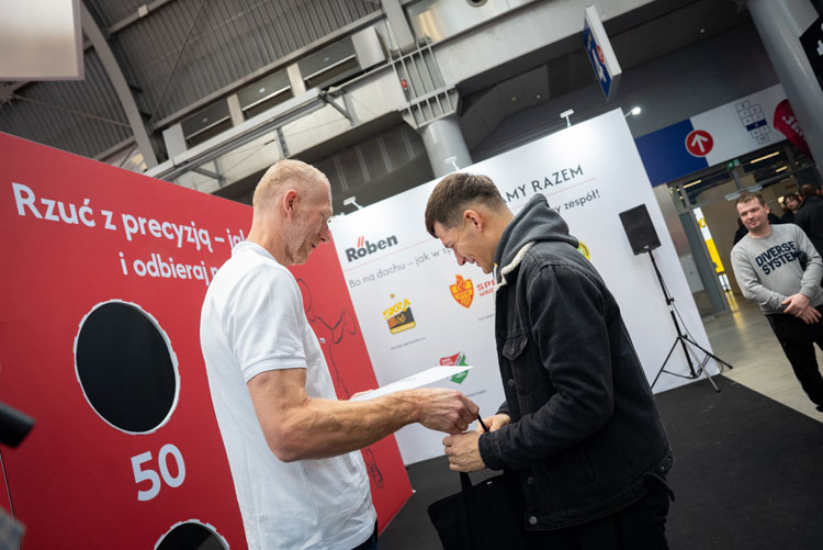 Szczególnym punktem obecności firmy Röben na targach był udział Karola Bieleckiego – wicemistrza świata w piłce ręcznej, który wystąpił w roli gościa specjalnego. Spotkania z Karolem Bieleckim oraz organizowane na stoisku Röben rozgrywki sportowe cieszyły się ogromnym zainteresowaniem zwiedzających i przyciągały liczne grono uczestników. Zwycięzcy otrzymywali gadżety firmowe dla dekarzy oraz piłki, plakaty i książki Karola Bieleckiego z autografami sportowca. Dlaczego akurat sportowy duch był motywem przewodnim na stoisku? Firma odpowiedziała hasłem: “Bo na dachu jak w sporcie – liczy się zgrany zespół!”.