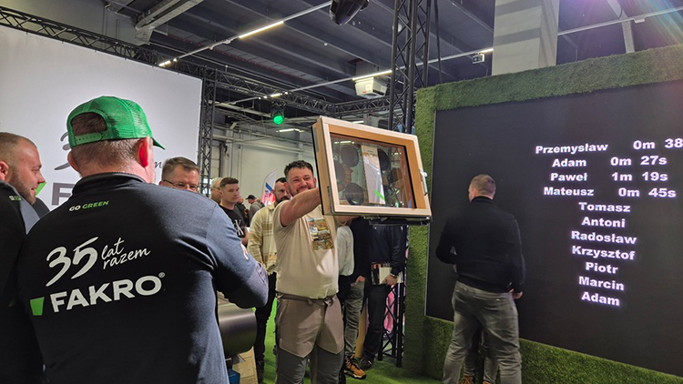 FAKRO zaprezentowało swoje rozwiązania na dużym, nowoczesnym stoisku, które przez dwa dni targów było miejscem intensywnych spotkań, rozmów branżowych oraz prezentacji produktów. Istotnym elementem obecności firmy były dwudniowe pokazy dla dekarzy w Strefie Rzemiosła, realizowane bezpośrednio na stoisku FAKRO. Odwiedzający mieli możliwość obserwowania pracy fachowców na żywo, poznania zasad montażu oraz praktycznego wykorzystania nowoczesnych rozwiązań dachowych. Duże zainteresowanie wzbudzała także makieta zielonego dachu, wykonana przez zespół DANBUD – Daniel Grabowski, prezentująca system montażu i obróbki blacharskiej zielonego dachu spadzistego.