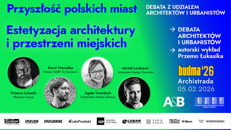 W rozmowie udział wzięli: Przemo Łukasik, architekt i partner w pracowni Medusa Group, Karol Nieradka, architekt i założyciel w pracowni maxberg i prezes szczecińskiego oddziału SARP, Agata Twardoch, Urbanistka Miasta Gliwic, Profesorka w Katedrze Urbanistyki i Planowania Przestrzennego na Wydziale Architektury Politechniki Śląskiej oraz Michał Lorbiecki, Urbanista Miasta Chorzowa, doktor ekonomii i finansów. Spotkanie moderowała Małgorzata Tomczak, redaktorka naczelna A&B.