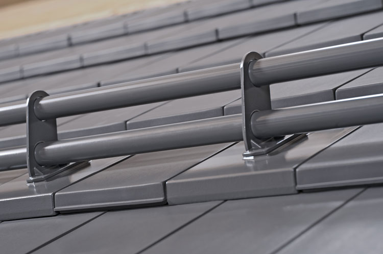 Precyzyjnie zaprojektowane wsporniki montowane są na specjalnych dachówkach podstawowych aluminiowych, wykonanych w kształcie i kolorze identycznym z ceramicznymi dachówkami połaciowymi. Dzięki temu cały system wtapia się w powierzchnię dachu, zachowując spójną linię i jednolitą barwę. Z poziomu gruntu praktycznie niewidoczny – ale zawsze gotowy do działania.