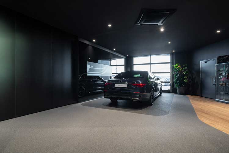 Do tego nowoczesnego obiektu, do strefy ekspozycji pojazdów w lobby, inwestor poszukiwał rozwiązania posadzkowego, które będzie trwałe i wytrzymałe, a jednocześnie atrakcyjne wizualnie. Zgodnie z wytycznymi marki Mercedes-Benz powierzchnia, na której ustawione są samochody, powinna przypomina