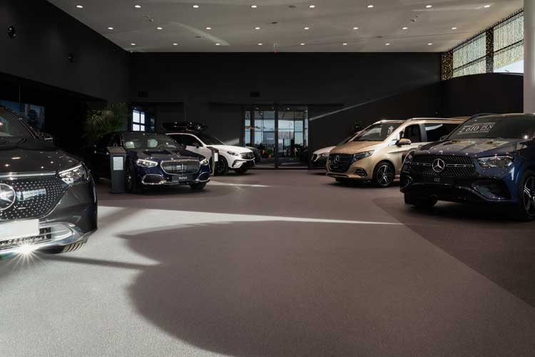 Posadzki żywiczne Flowcrete w najnowocześniejszym salonie i serwisie Mercedes-Benz Duda-Cars w Lasocicach