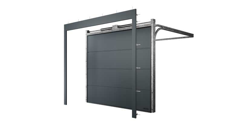RenoSystem rozwiązuje również jeden z najczęstszych problemów modernizacyjnych – brak lub zbyt niskie nadproże, przejmując funkcję konstrukcji nośnej dla bramy. W sytuacjach skrajnych, gdzie wysokość nadproża wynosi zaledwie 80 mm, zastosowanie znajduje brama UniPro Nano80, zaprojektowana specjalnie do takich warunków.