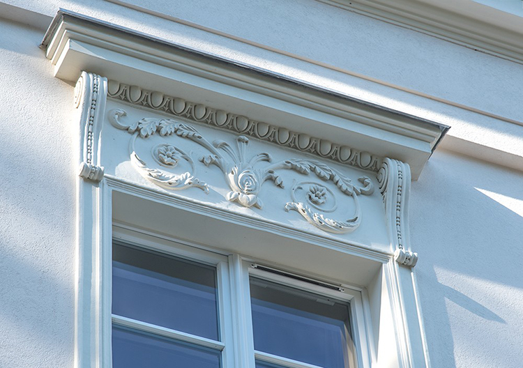 Zastosowanie zapraw szybkowiążących z linii produktów Baumit Stucocco umożliwia obróbkę w czasie zbliżonym do spoiw gipsowych, powszechnie stosowanych do prac sztukatorskich, które są wykorzysty­wane jedynie we wnętrzach budynków. W przeciwieństwie do gipsu, który w stanie zawilgocenia wywołanym opadami deszczu czy śniegu pęcznieje i traci wytrzymałość, zaprawy sztukatorskie Baumit Stuccoco mogą być stosowane także na elewacjach, utrzymując precyzyjny kształt detali i długotrwałą odporność na warunki atmosferyczne.