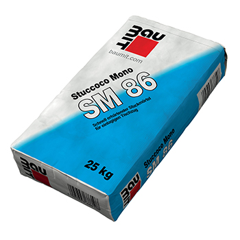 • Baumit Stuccoco Mono SM 86 – jednowarstwowa zaprawa sztukatorska umożliwiająca przygotowanie profili prostych za pomocą szablonu, metodą ciągnięcia na elewacji lub na stole, polecana do reprofilacji istniejących elementów;