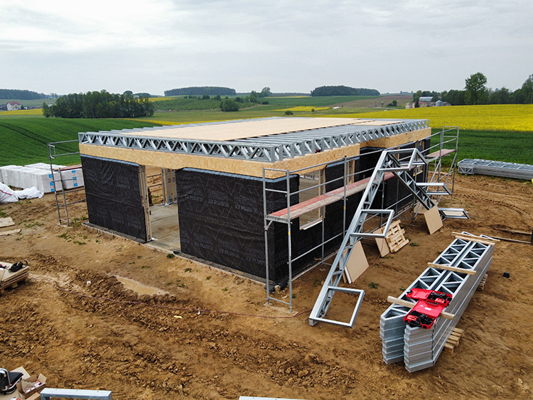 Wśród inwestycji wykonanych z drewna szczególnie popularne są konstrukcje szkieletowe - to rozwiązania, które zyskują na znaczeniu dzięki szybkiemu procesowi realizacji i stosunkowo lekkiej technologii. Ich charakterystyka sprawia jednak, że są bardziej podatne na zmiany temperatury. Szybko się nagrzewają, ale też równie szybko tracą ciepło. Z tego względu odpowiednia izolacja stanowi absolutną podstawę ich funkcjonowania, wpływając zarówno na komfort mieszkańców, jak i na efektywność energetyczną budynku. Przez nieizolowany lub źle wykonany dach może uciekać od 20 do 40 proc. ciepła. Natomiast z badań właściwości izolacyjnych 100-metrowego poddasza przeprowadzonych przez Instytut Fraunhofera w Holzkirchen wynika, że odpowiednia membrana dachowa zmniejsza wymianę powietrza o 30 proc. W realizacji w Lubawie szczególny nacisk położono właśnie na ten aspekt, stosując wysokiej jakości rozwiązania ochronne, które zabezpieczają konstrukcję z każdej strony. Dzięki temu budynek nie tylko skutecznie opiera się działaniu wilgoci i zmiennych warunków atmosferycznych, co przekłada się na jego trwałość oraz realne oszczędności w długim okresie użytkowania.